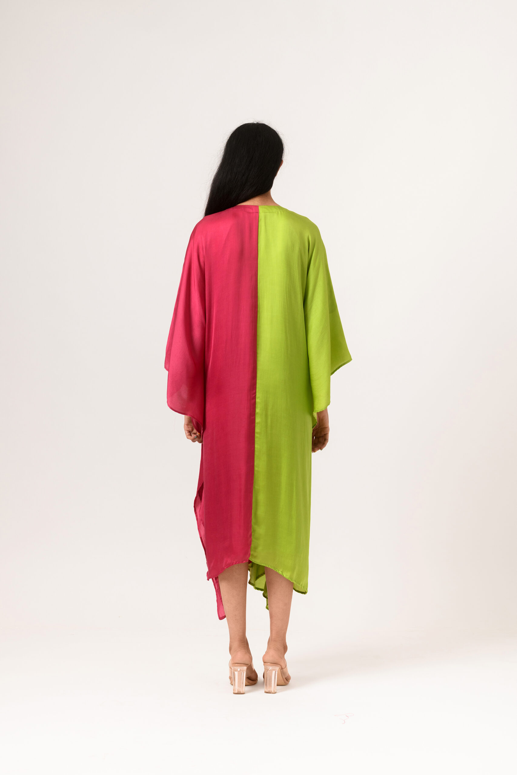 The Yellow-Green Umbrella Cut Dress features patterned sleeves, combining vibrant colors with a unique design for a standout, stylish look. Perfect for adding flair to any occasion.