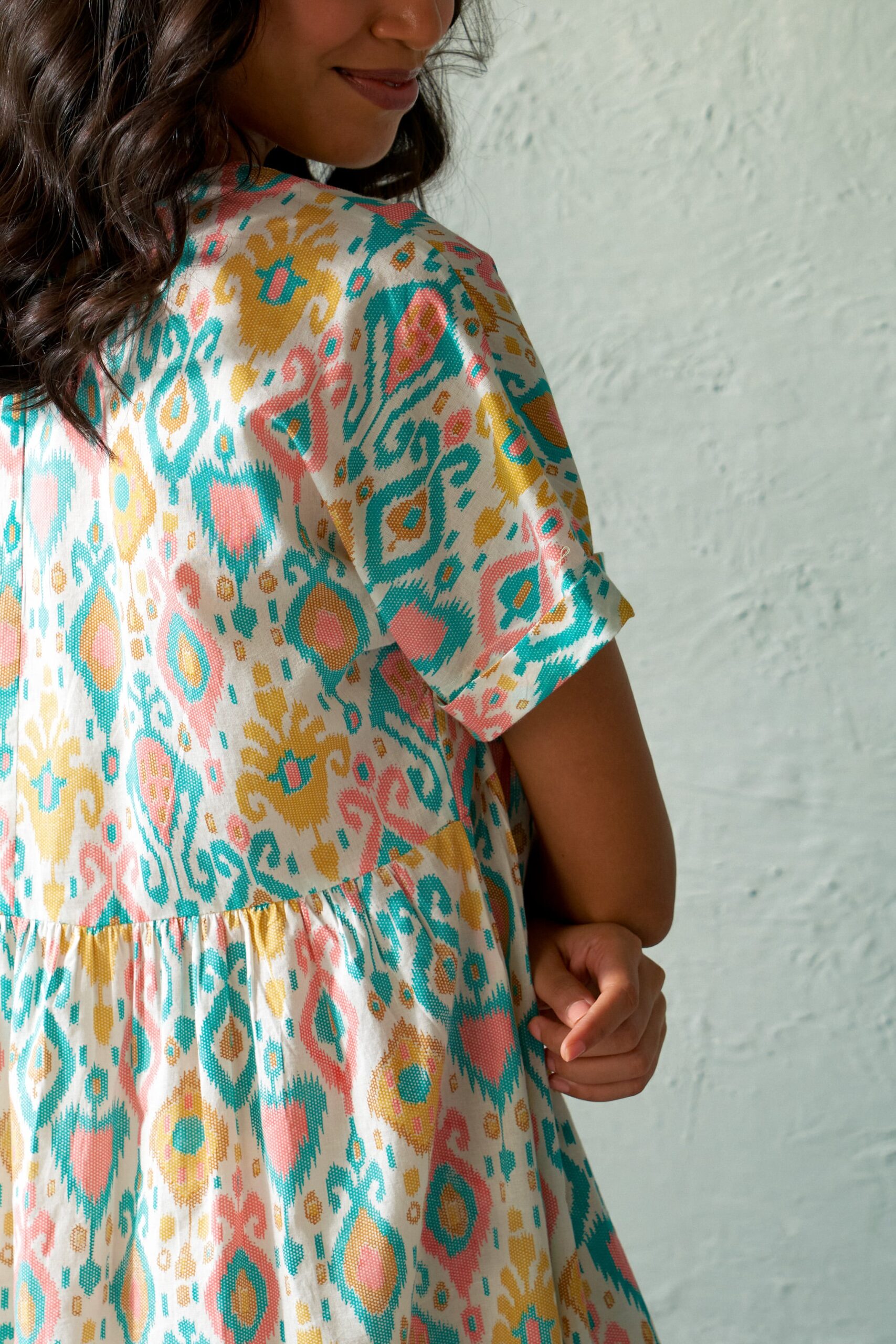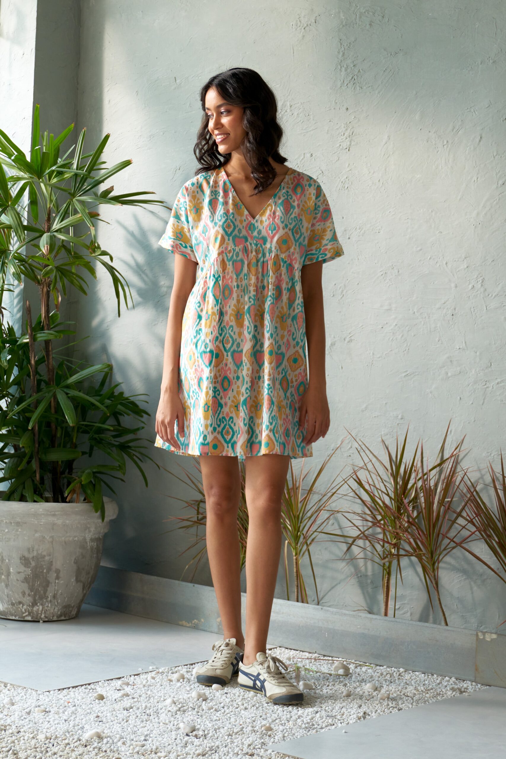 Add a touch of playfulness to your wardrobe with the Willowy Dress, a short and flairy design crafted from lightweight cotton. Featuring a vibrant and cool print, this dress is perfect for bright, sunny days. The flattering V-neckline and short sleeves enhance its breezy, stylish vibe, making it an effortless choice for casual outings or relaxed celebrations. Light, airy, and fun, the Willowy Dress is your go-to for carefree elegance.